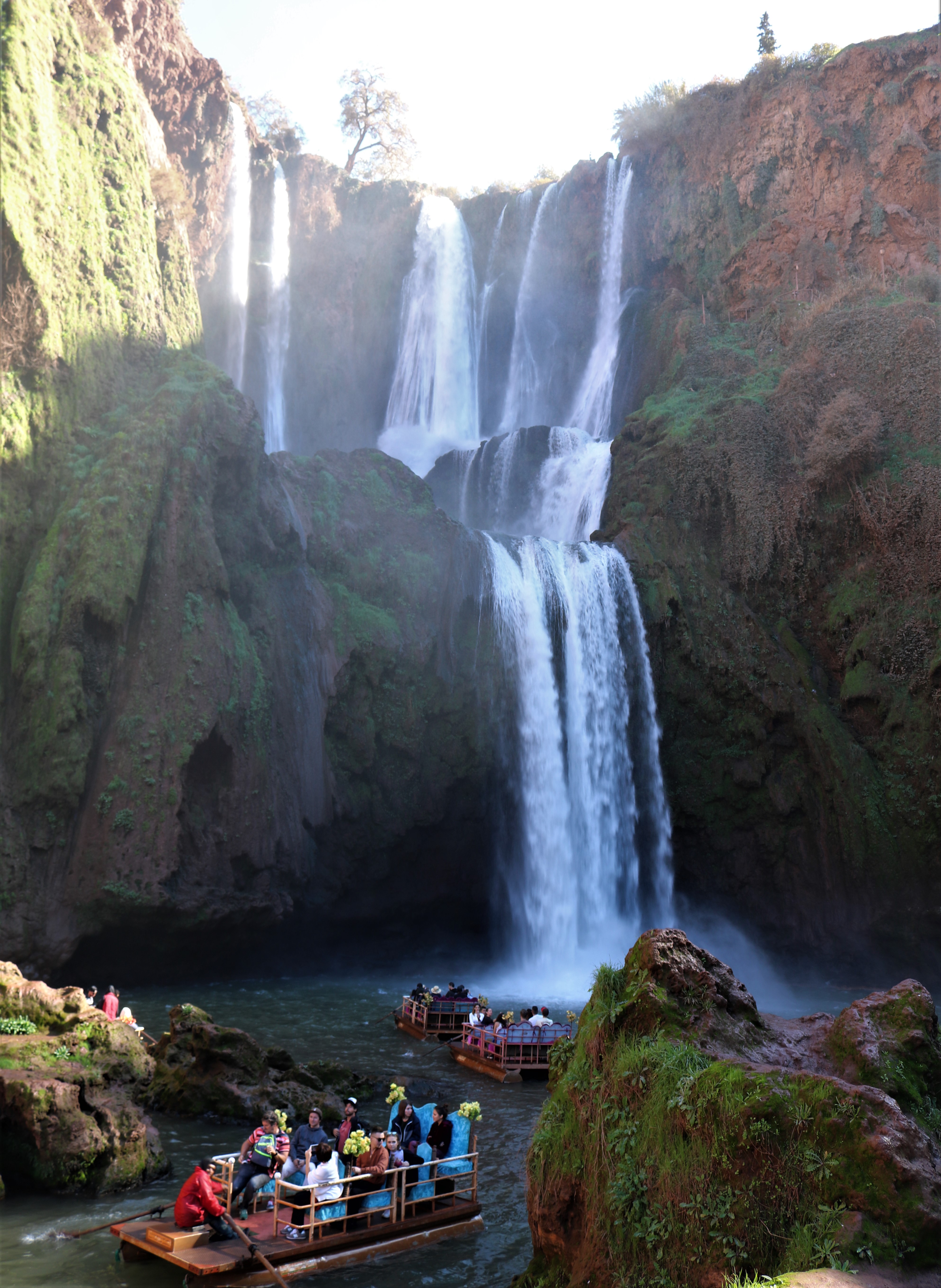 Once we arrived at the waterfalls, we were greeted by our guide, Ibrahim. He was very interesting, and shared a plethora of information about the falls and the area. He noticed a group of us (ok, me) immediately distracted by a few of the Barbary apes that live near the falls, and he promised there would be more later — and he was right! The falls were supposed to be the main attraction (and they are beautiful) but my favorite part was the adorable monkeys. More on that later… Ouzoud Falls is comprised of several waterfalls in the El-Abid River Gorge. In the Berber language, “Ouzoud” means “act of grinding”; this is appropriate as there are many mills in the area. Ibrahim also shared that Ouzoud Falls are the highest falls in Africa. They are 110 meters tall, while Victoria Falls is actually 108 meters tall. Despite being 2 meters shorter, Victoria Falls is the largest waterfall in Africa due to sheer volume and size.