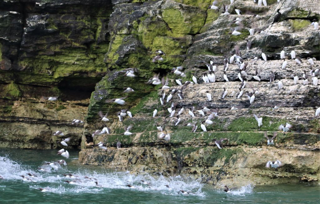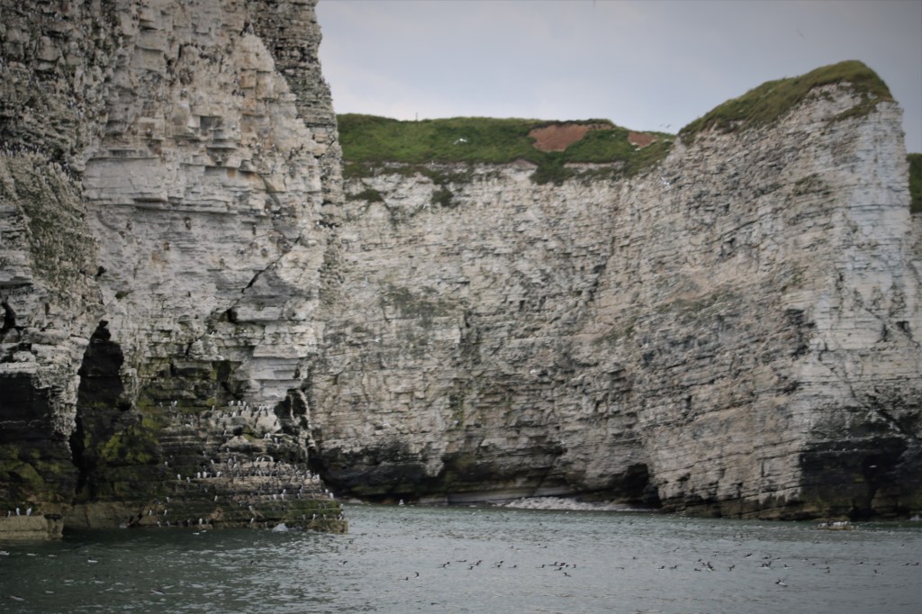 After exploring the cliffs and walking along to see views of the coast, we headed to Bridlington Harbour, where we had a three hour seabird cruise booked. Despite the cold, and spots of rain, the cruise was phenomenal! It left from Bridlington, and cruised along the coast up to Bempton Cliffs. We marveled at the gannets, puffins, and other seabirds, and enjoyed spectacular views of the cliffs from the water. Puffins are better swimmers than they are flyers, and they flap their wings extremely fast to stay in the air. They aren’t quite as graceful as others birds when they land, and this makes them easier to spot in the air. We also pulled in close to some rocky cliffs and little caves, allowing us to view the birds up close in their nests. If you are interested in seabirds or fascinated with the brightly colored puffins like I am, this trip is for you!