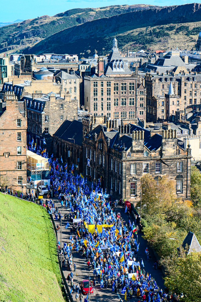 We did a lot of walking while in Edinburgh. The city is just so charming, be sure to leave time to wander the streets, explore the Royal Mile, and browse the shops. The Royal Mile is basically the collection of streets that form the Old Town area of Scotland. They lead to Edinburgh Castle, which overlooks part of the city. We explored a lot of Old Town, but didn’t get to see all of it, or get some of the iconic shots of the buildings because there was a protest/walk talking place. There was a Scottish referendum about leaving the United Kingdom. Many Scots feel they pay a disproportionate amount of taxes to the United Kingdom, but most of the many goes to London and England. I can relate to how they feel. Growing up in Upstate New York (like almost Canada) many New Yorkers felt the majority of our taxes went to New York City. It seemed like a similar situation. It was neat to see them assembled peacefully and listen to their concerns, but it certainly made for a crowded weekend and not ideal conditions for being a tourist. That said, everyone was friendly and cordial.