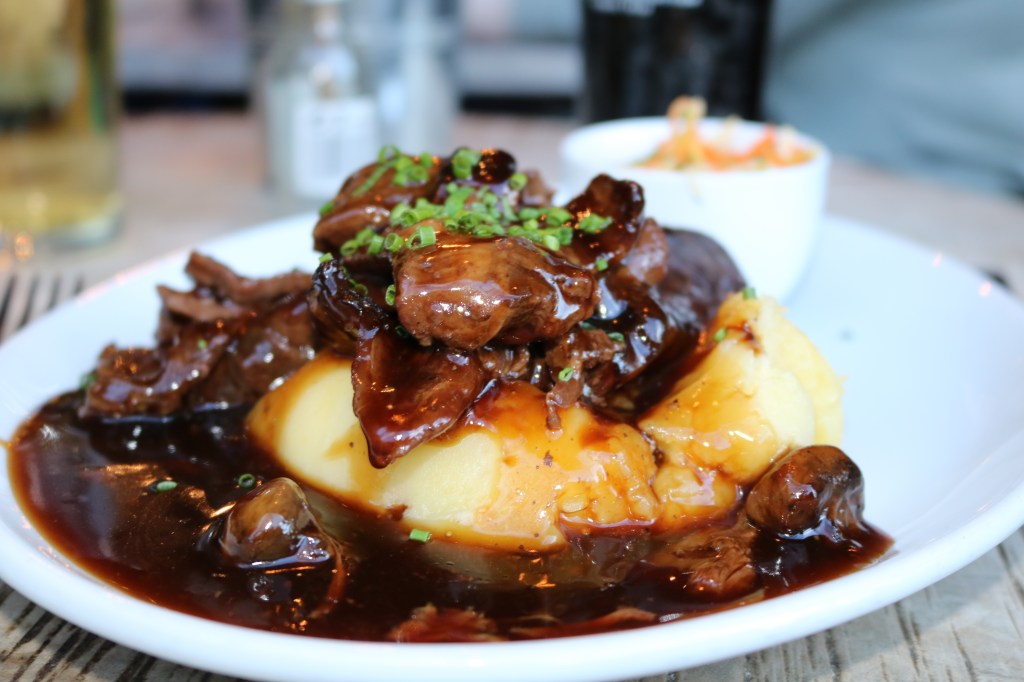 After the castle, we continued to wander the streets and shops. I think I was searching for something that didn’t exist – I was intrigued by the tartan plaid Scotland sweatshirt but didn’t like the fit on any of them. It was still fun to explore the shops. As I mentioned, there was a large protest/gathering the day we were there, and that prevented us from exploring some areas of the city because it was just so crowded. We eventually decided to go to dinner and found a place that serves everything with mashed potatoes; it was amazing! We went to Makar’s Gourmet Mash Bar and it was so delicious. Everything is rich and filling. It’s definitely not the place to go if you’re on a diet, but we really enjoyed being fatties. I would eat there again if I went back to Edinburgh.
