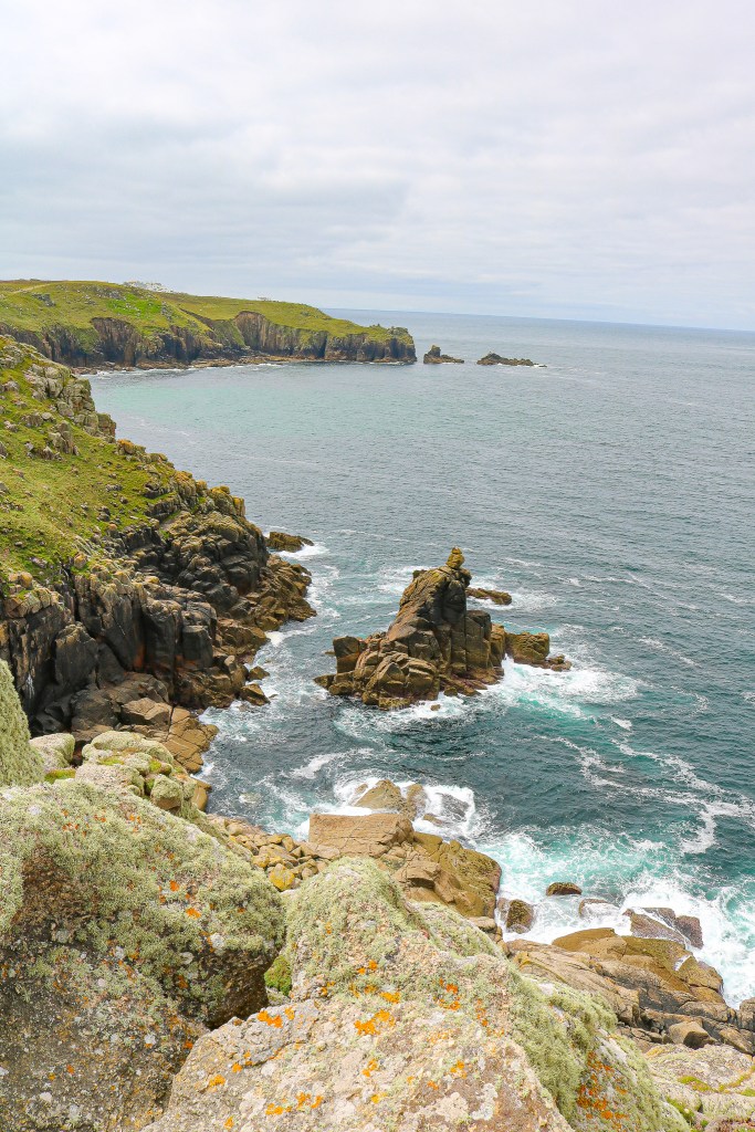 From Land’s End we took the trail to the right and walked to Sennen Cove. It’s an easy walk, and I honestly don’t remember how long it took because I’m one of those annoying people that stops and takes a million pictures every five seconds. You will pass a shipwreck which is interesting. Cornwall is notorious for shipwrecks, which isn’t too surprising given all the rocky cliffs. The hike into Sennen is beautiful, and it’s a cute beach town. We walked around and enjoyed our first Cornish pasty, which was absolutely delicious and something you MUST try when in Cornwall. I was amazed at how many people were in the water on a cloudy and cool day. Many surf camps were going on as well, so if you’re a beach lover and don’t mind cold water, Sennen Cove might be the place for you! After spending about 45 minutes in Sennen, we re-traced our steps and headed back to Land’s End.