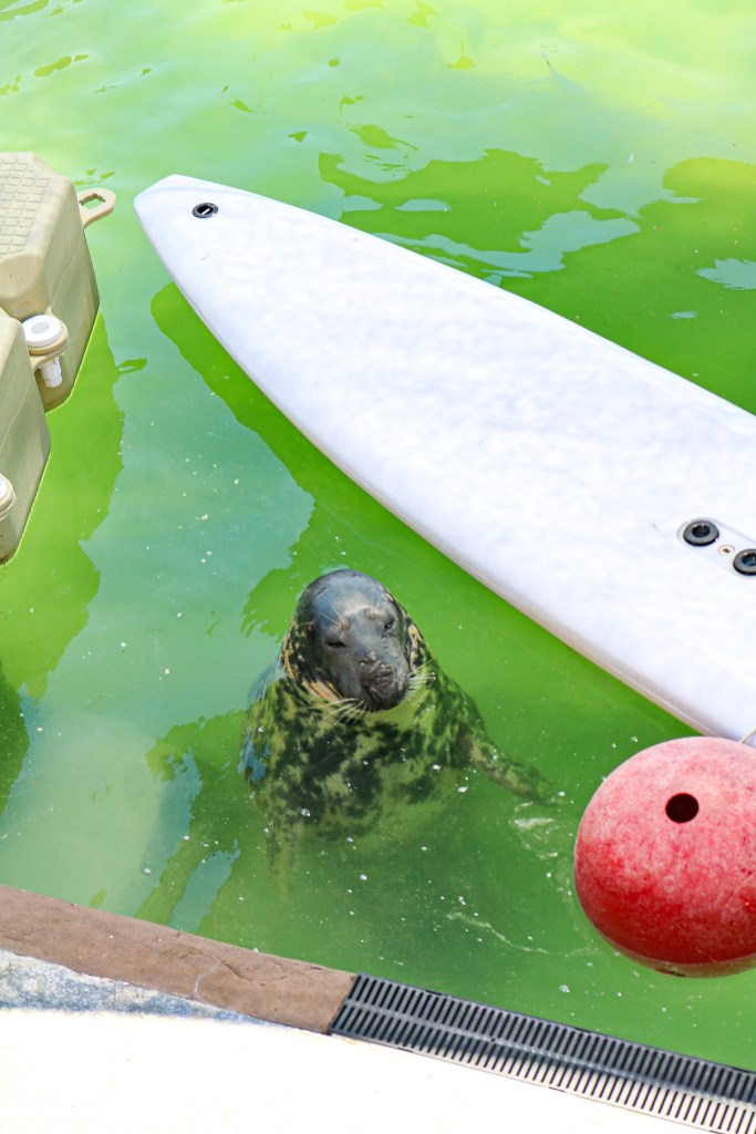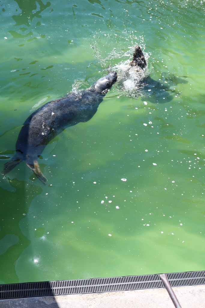 Our next stop was the Cornish Seal Sanctuary. Living near the Norfolk Coast, we have learned the United Kingdom has 40% of the world’s population of grey seals. Many of them live in waters off the coast near us, so we’ve been to see them in winter when they come ashore to give birth. The Cornish Seal Sanctuary is a charity that rehabilitates sick or injured seals with the goal of bringing them back to the ocean. Every year they rescue about 80 seals and most end up back in the wild. Unfortunately, some are unable to return to the wild either from illness that requires daily medication or blindness. Those animals are given a permanent home at the sanctuary and you can see them when you visit. The sanctuary also provides a home for a handful of other animals (penguins, sea lions, otters) that came from other zoos or sanctuaries. If you like animals, it is worth a visit, but you need to book ahead of time online due to covid restrictions. During our visit, there were no little seal pups in the rehabilitation pool – which is a good thing, they all made it back to the wild!