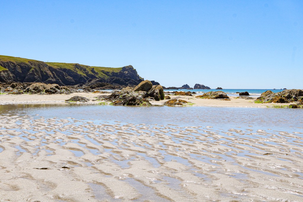 After several jam packed days, it was time for a relaxing day, and luckily the weather complied. The sun and temperatures were perfect for a beach day! Even though there were beaches near where we stayed, we loved the Lizard Peninsula and Kynance Cove so much that we decided to head back that way. The 55 minute drive ended up taking almost an hour and 40 minutes because of road works. When we arrived at Kynance Cove, the parking lot was full and there was a line of cars turning around. This took up more time, but also gave us time for another game plan. We figured if the parking lot was full, the beach would be crowded and not the experience we wanted. In the end, we decided to park in the village of Lizard and walk to the coastal path and find the secluded beach we saw on our hike a few days ago. The town of Lizard ended up being an unexpected and adorable stop! The main parking lot operates on donations, and there are public restrooms as well. For lunch, we stopped for another Cornish Pasty (sensing a theme here…) and then headed on our way to the trail. You can get to Kynance Cove walking from the town of Lizard, but this is not the path we took. We walked down the road to the coastal trail, took a right and did a short hike until we came to what is referred to by the locals as Pentreath Beach. There used to be steps built in to the cliff to get you to the beach, but part of the staircase was washed out; you kind of have to scramble down the cliff a bit to get to the stairs. It isn’t too hard, but I was grateful we wore actual shoes. The views from the beach were incredible, and being surrounded by cliffs helped break the wind. It was the perfect beach day I had been longing for. It was so relaxing, we didn’t even leave until almost 5:30. That night was a low key night in, as we were tired from the sun and wanted to get moving somewhat early the next day.\