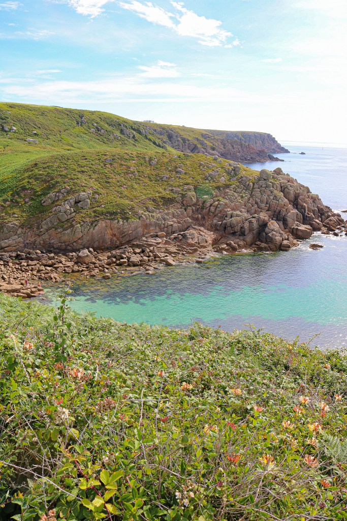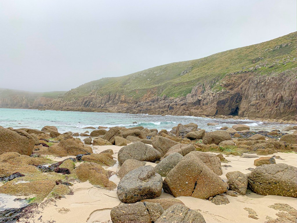 From the window of the bedroom at our loft, you can see the ocean. Unfortunately, we woke up that morning to fog and almost zero visibility. Since I’m prone to overreacting and excessive worrying, I immediately thought the trip was ruined and the weather would suck the entire time. Luckily my husband convinced me that we should still head out and explore a little after breakfast, so I begrudgingly put on a sweatshirt, bitching about how it should be warmer in July. We headed down to Nanjizal Beach, which boasts a popular cave. What’s that expression – if you don’t like the weather, wait a few minutes. By late morning, the fog had cleared and the sun came out and in that moment I knew we were in for some gorgeous views on our trip. We explored a little bit of the coastal path in both directions, stopping to take too many pictures, and not really going anywhere. No matter where you stay in Cornwall, my recommendation would be to staying near the coast. The Coastal Path is absolutely amazing, and there are so many beautiful hikes (or “walks” as the British call them) to do. I’m glad we made the decision to stay about a 10 minute walk from the coast, and brought our hiking boots.