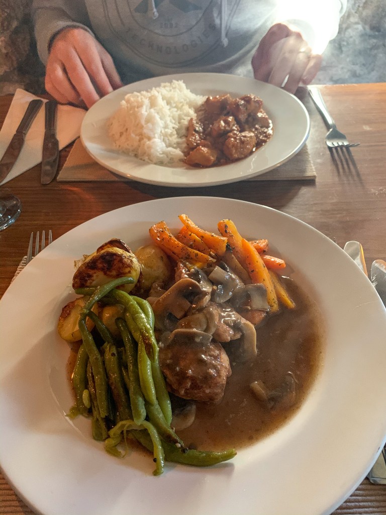 While most of our meals were cooked at home in the airbnb, we did plan some nights out. Based on a recommendation, we booked a table at Carn Brea Castle Restaurant in Redruth. They ONLY take bookings, and don’t have a website, but you can call them at 01209 218358. It’s an intimate setting in a castle tower, by candlelight, but it isn’t pretentious. The owner is Jordanian, so the food is a Middle Eastern/Mediterranean variety, which was a huge draw for us. We had a delicious meal and enjoyed the views from the roof. After all, how often do you get to eat in a castle? In true Cornwall fashion, the gravel road to get there is painfully narrow and lined with tall shrubs and grass so you just kinda say a prayer and hope no one is coming. It’s all part of the vibe when you go to Cornwall. LOL.