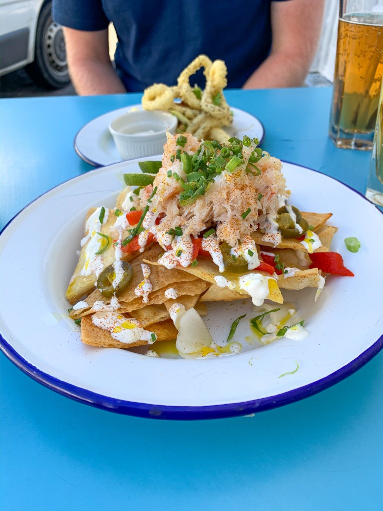 One thing we had read about online was the local Newlyn crab sandwich, and since Newlyn was on our way home and we had shared a pasty a few hours earlier, we set off in search of a late lunch. The little village of Newlyn is very close to Penzance; likely walking distance. When we arrived a little after 3 we learned THE place to have this sandwich was closed. Instead we wandered around and came to a cute little bistro, the Mackerel Sky Seafood Cafe. The entire menu was mouthwatering, and we ended up not getting the sandwich. We did however, enjoy our calamari and plate of crab nachos. It was a tasty late lunch, and a place I’d definitely recommend. We ended up heading back home after walking around a bit.