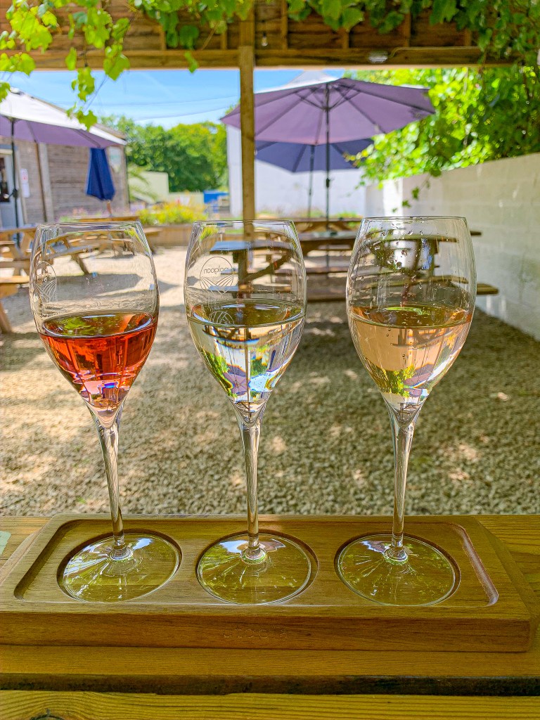 Our experience at Healey’s Cyder Farm was so good, that we decided to support a local vineyard. We had driven past Polgoon Vineyard a few times on our way through Penzance, so we decided to book a tour and tasting. I’m starting to sound like a broken record, but because of Covid you book online ahead of time, and the tour is self-guided (they give you a paper with information so you know what you’re looking at). I was pleasantly surprised at how much I enjoyed the wines, simply because we were served some white, sparkling, and rose. I’m normally a dry or medium bodied red wine fan, but everything we tried was delicious. It was such a relaxing afternoon on their patio, that after our tasting flight we ordered a glass and just enjoyed the view and sunshine. The location is perfect, and from the vineyard you can see the ocean. Check this place out if you’re in the area.