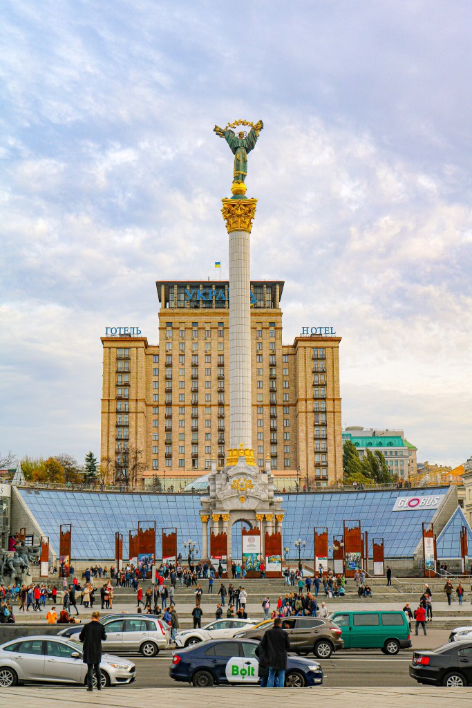 We arrived at Kyiv Boryspil airport in early afternoon. The Ukraine is NOT part of our Vodafone roaming plan, which covers almost all of Europe. We bought a cheap SIM card in the airport to use for navigation. We paid around $10 for a couple GB of data which was all we needed for a weekend trip. After that, we took a taxi from the airport to city center; I can’t remember the exact cost, but it was pretty reasonable considering how far it was. The ride from airport really highlighted what a large city Kiev truly is! Kiev is the capital of the Ukraine, and has almost 3 million people. A former Soviet city, both Ukrainian and Russian is widely spoken in the city. We arrived at the city center, and had slight difficulty finding our place, because the entrance was through a restaurant. We stayed at the City Apartments, which were extremely cheap. Despite the name apartment, it was just a single room with a bathroom. Our room was clean, but the smoke from other rooms nearby seemed to come in to our room. The location was perfect; right on a large square and near the metro. The Independence Monument is one of the first things you see when you exited our apartment.