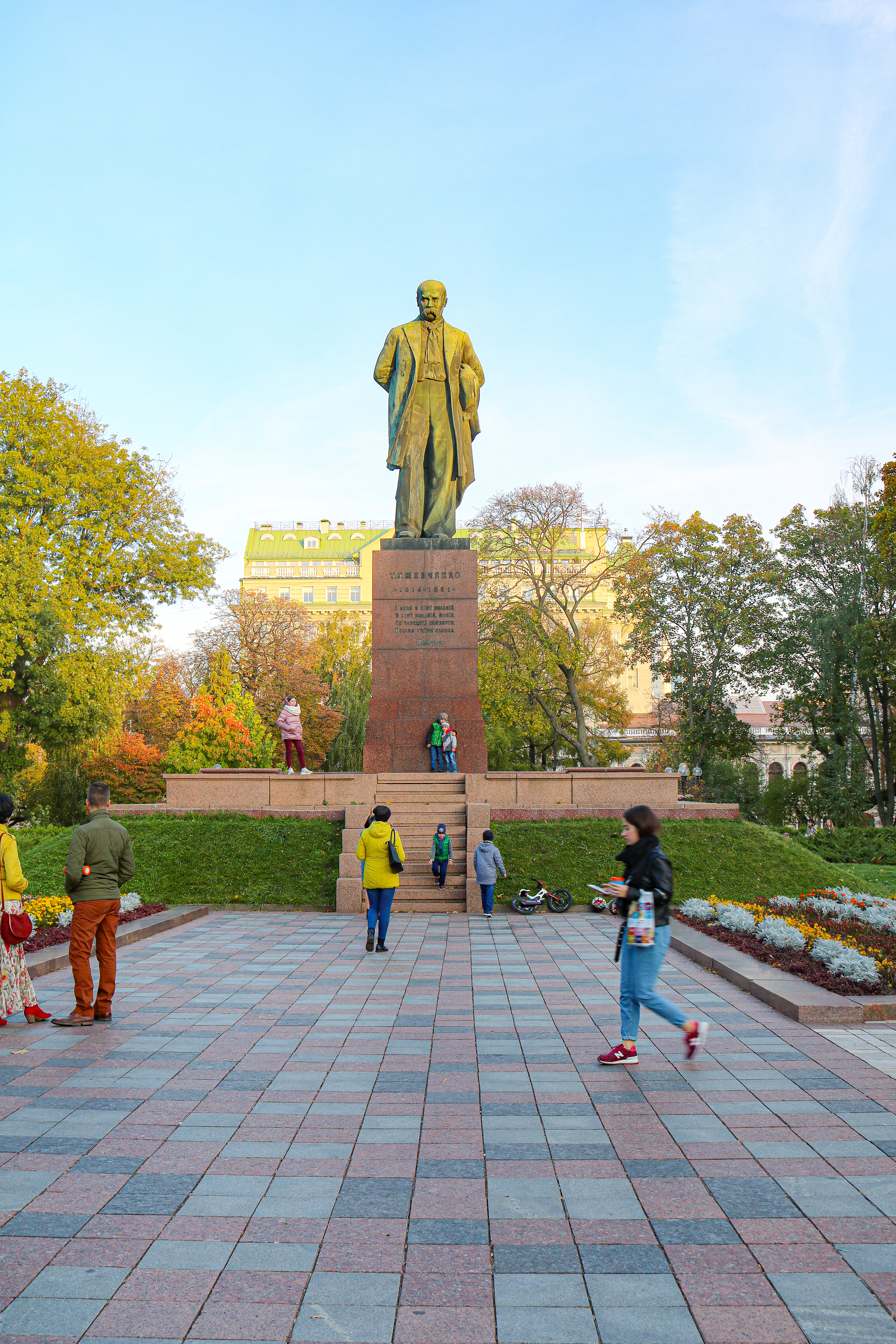 The first thing we did, was set out for some food! I was so excited to have Ukrainian food, as the food in Eastern Europe is always so good. We didn’t have much of a game plan, and really just wandered looking for a place. It took too long to find a lunch place, as we weren’t in a touristy area. Eventually, we stumbled upon a cafeteria style fast food Ukrainian restaurant, called Puzata Hata . I’m pretty sure this place was the Ukrainian equivalent of Golden Corral, but I was hungry and eager for local food. Nothing was in English, so we’d just point at things that interested us. I’m not sure what we ate, but it was all really good! We tried a soup, a chicken dish, and some dumplings. The food was really cheap too. After that, we explored the city without much of a plan other than seeing a bunch of the magnificent Orthodox Cathedrals. We wandered past the University of Kyiv and saw the Red University Building, which is a symbol of the University and higher learning. There were so many memorials and statues, that I wish I could’ve translated to learn more about them.