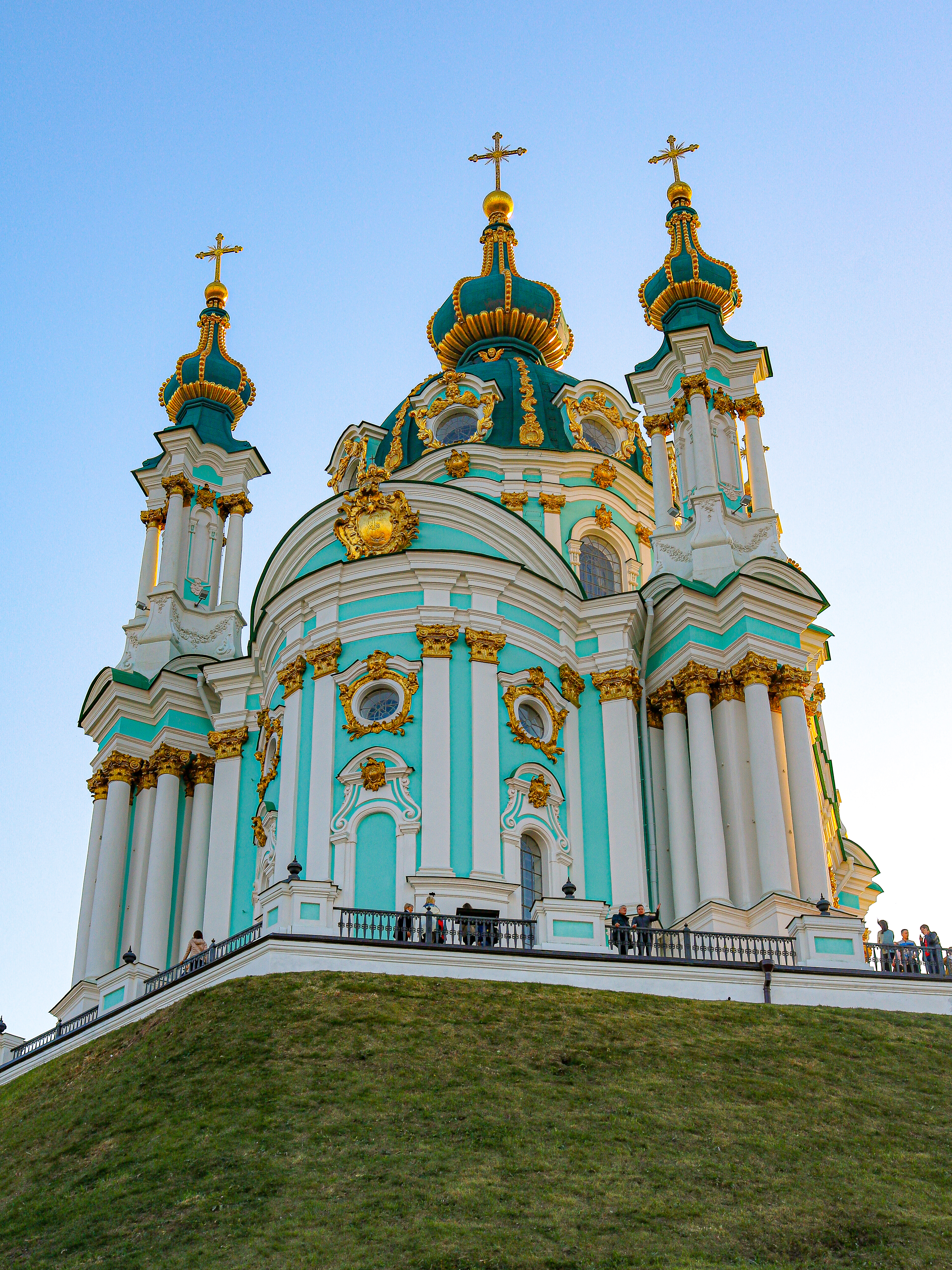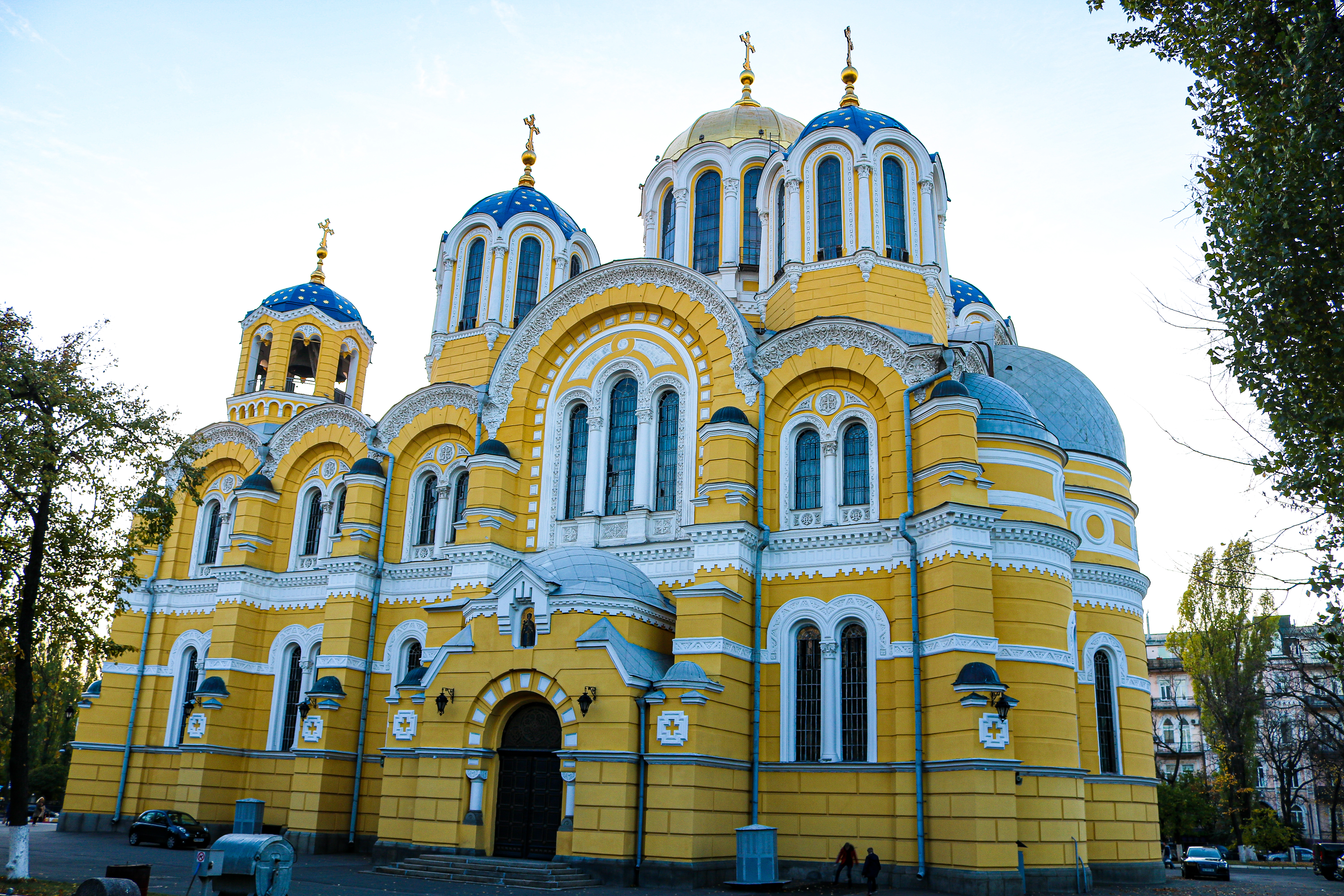 The first Cathedral we stopped at was St. Volodymyr’s Cathedral (Vladamir). Isn’t Vlad such a Russian name? No surprise there’s a Cathedral named after him. I wish we could’ve gone inside because the outstanding is absolutely incredible and so vibrant. Compared to some other Cathedrals I’ve visited in Europe, it’s relatively new. It was built in 1852 to commemorate the 900th anniversary of the baptisms of Kievans. The Church was closed at one point and became a museum. After World War II it was reopened; at one time, it was the only Orthodox Church in the USSR that tourists could enter. The bright yellow color makes it unlike any cathedral I’ve ever seen.