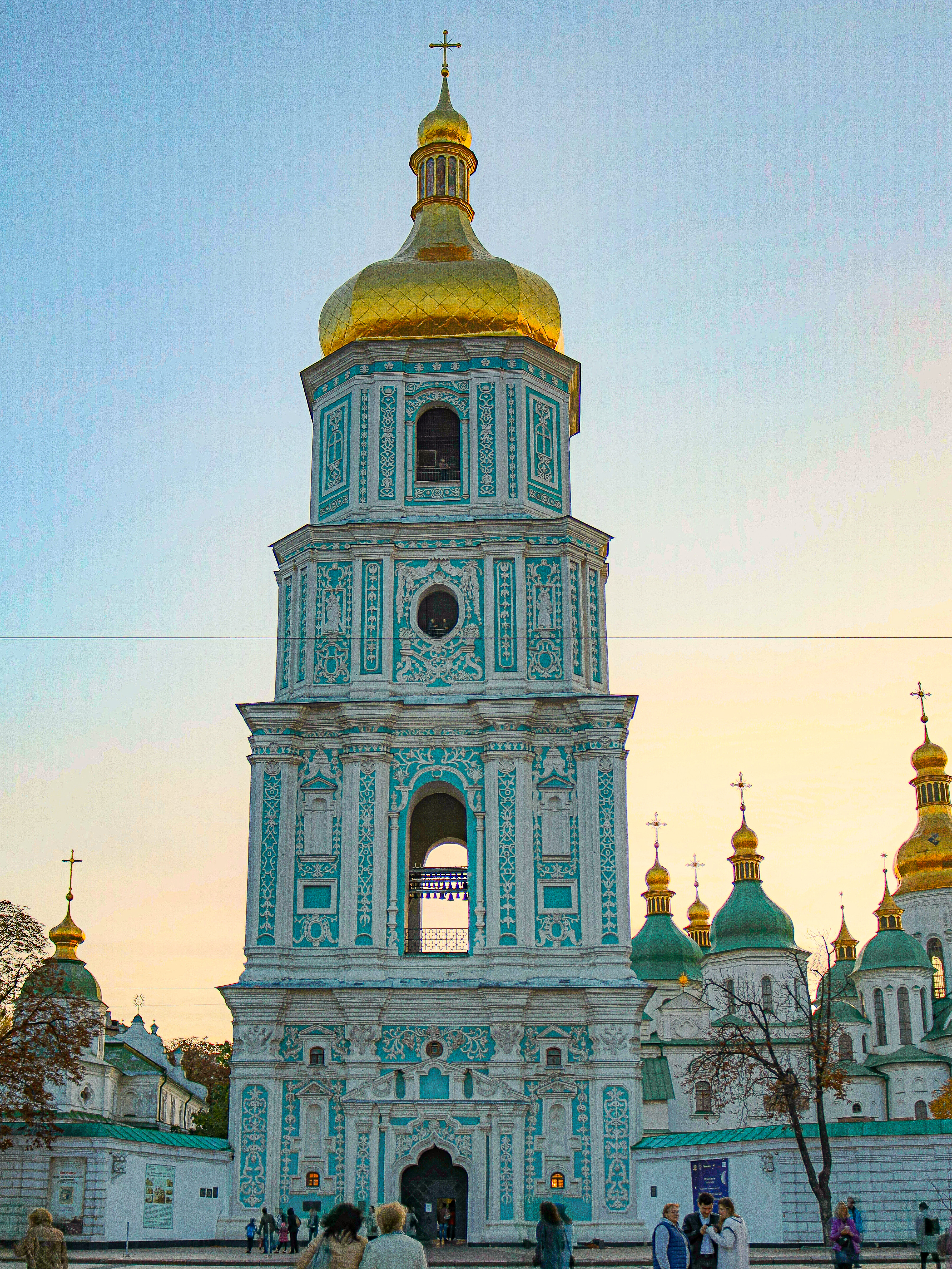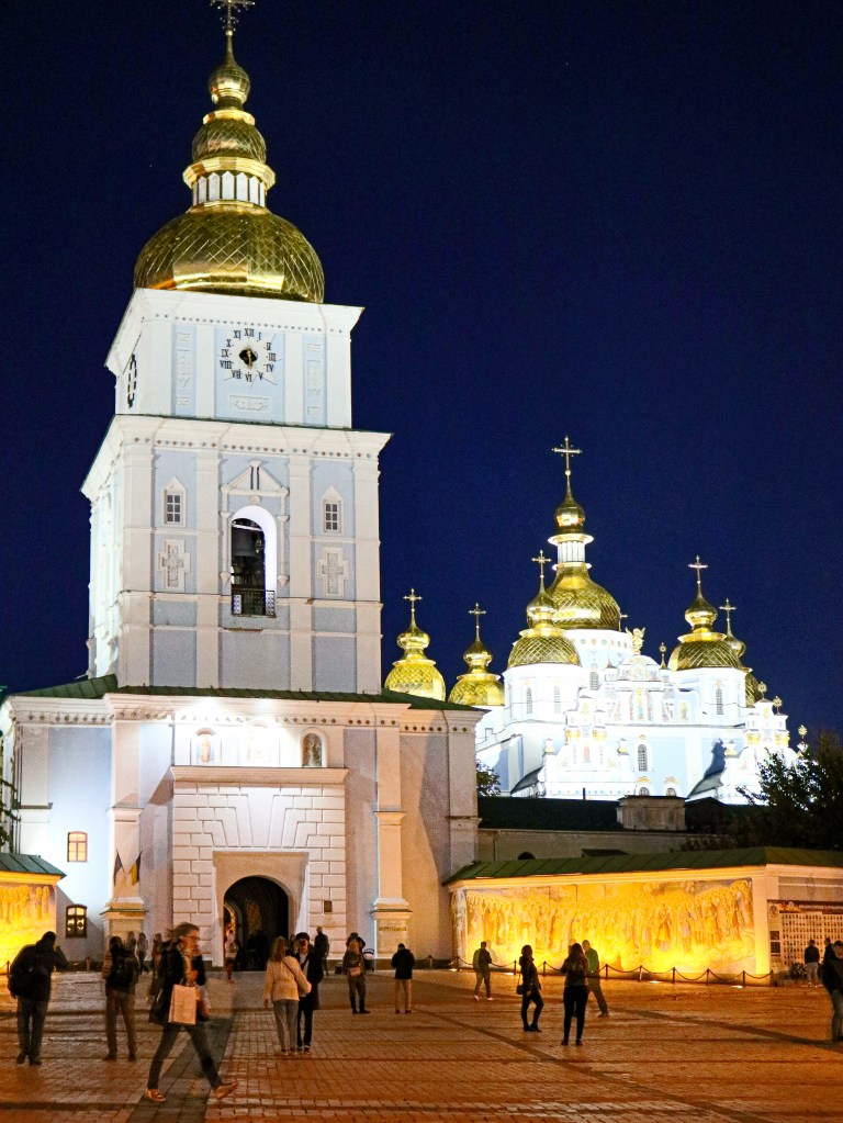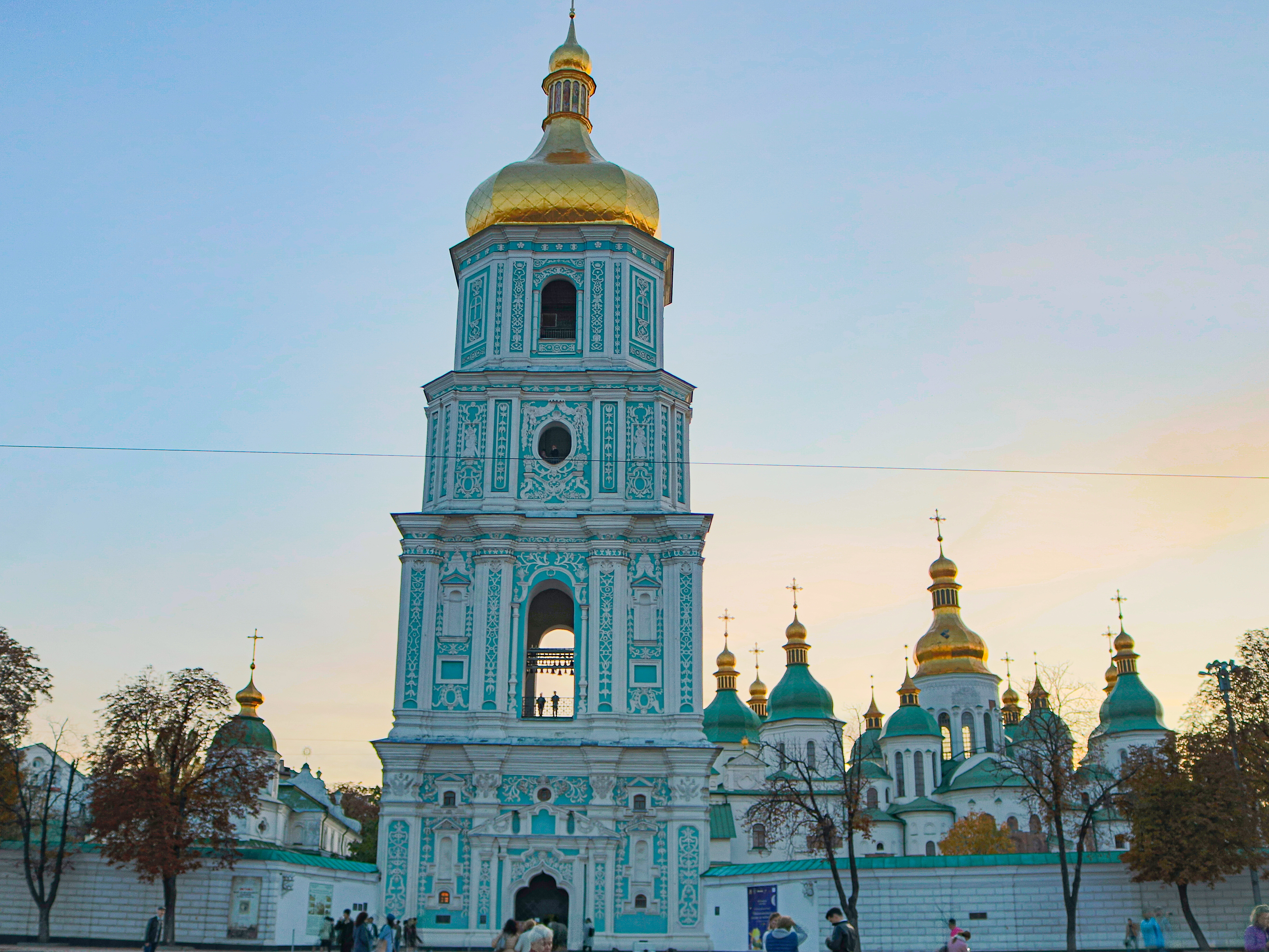 After visiting St. Volodymyr’s, we set out for St. Sophia’s Cathedral. The city is fairly spread out, and I’m not sure we did the best job planning, but we did see a lot! I had a hard time getting pictures of St. Sophia’s from the main square. First, it was hard to fit in. Then, I struggled to take a photo that wasn’t crooked. I’m by no means a professional and have had zero training; I’m just out there having fun and taking pictures of beautiful buildings. St. Sophia’s was almost closing by the time we arrived, and we only had time to do one thing, so we choose to buy a ticket for the tower instead of going inside. I’m glad we had the chance to get a ticket for the tower because the views (and photos) were stunning! We caught sunset as well, which added to the beauty. There are also amazing views of St. Michael’s Monastery, from the tower. I highly recommend the tower climb because the photos you get are incredible. Of all the Orthodox Cathedrals in Kiev, St. Sophia was my favorite.