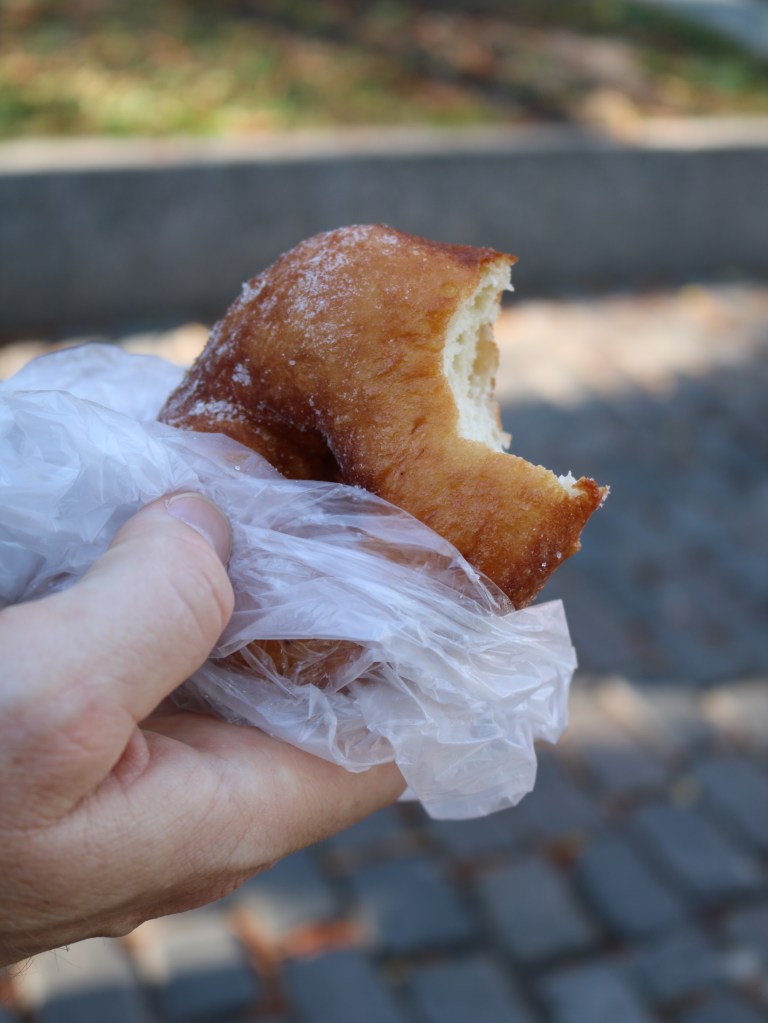 After a brief stop at the memorial, we walked to the Lavra Cave complex, enjoying the sunshine (something we don’t get much of in England). I’m honestly not really sure what the whole site was, but it was pretty incredible! I’ve never seen so many gold domed roofs, a striking contrast to the bright white buildings. The Monastery Complex is rather large, and there was an outdoor market going on while we were there (with incredible Ukrainian Donuts for the equivalent of 10 cents each!) It is easy to spend several hours wandering the complex and taking pictures. We decided to go in the caves, a decision I later regretted because I get extremely claustrophobic. The admission is fairly cheap, and you also buy a candle to see in the dark. Women need to have heads covered and they sell coverings if you don’t have a scarf or bandana. For me, there was too much open flame from the candles in too close a space! I kept worrying my hair would catch on fire, so we didn’t stay in the caves long. It was also so crowded it was hard to see the shrines and catacombs. We did go inside one of the Cathedrals and it was stunning on the inside, with so much gold! It’s definitely worth going in.