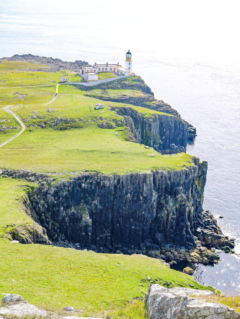 After our Harry Potter superfan experience, we hit the road for Skye. It was a long drive but we were greeted with so much beauty! I tried to map out things to do in sections of Skye; the island has a unique shape with lots of peninsulas, and one lane roads leading to different areas would make for slow travel. Skye is definitely one of those places where it takes twice as long as to get to places than you think it will. If you get motion sick like I do, you’ll want to bring some pills along for that. Rather than lose time by heading to our room, we headed straight to Neist Point which was on the opposite side of the island as most of the stuff we planned to do. We made a quick stop at the Old Sligachan Bridge, which was on the way, but only for a quick photo. Neist Point is the most westerly point on Skye and it’s lighthouse is iconic. I had planned to do other things near Neist Point but there wasn’t time due to me underestimating how long it would take to get there, and how many times I stopped to look at/photograph/pet sheep on the side of the road. Priorities!