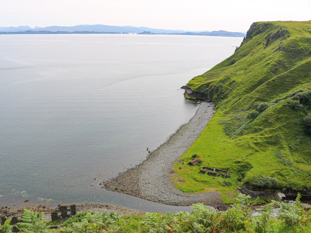 We hopped back in the car and headed for our next stop, Lealt Falls. There is no shortage of waterfalls on the Isle of Skye, that’s for sure. These waterfalls have a car park, and a few picnic tables. It was convenient for us, as we were ready for our lunch. The falls are short and easy walk from the carpark. There is a way to view them from below, but I’m not sure where that walk starts. We enjoyed the view from above, looking out over the water. It was a quick stop for us, about 30 minutes, and that’s only because we ate lunch. You could make this a very quick stop, or skip it if you’re pressed for time.