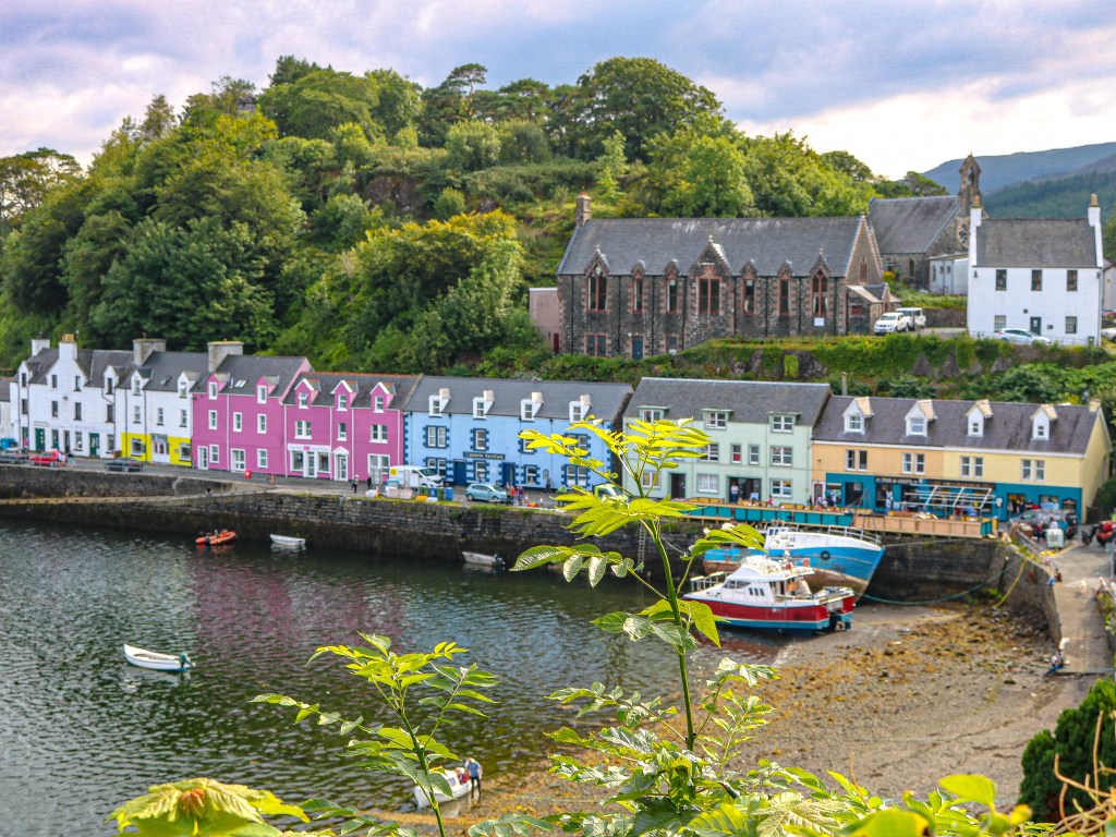 Our final stop for the day was to the town of Portree (after a good shower and scrubbing all the dead midges out of our hair). Portree is the capital of the Isle of Skye, and is a quaint, waterside, Scottish town. There are all sorts of shops where you can buy Scottish gifts, or even just ice cream. Usually, cruise ships stop in Portree, and I imagine it is wall to wall people on those days, so the silver lining of Covid was it wasn’t too crowded. Portree has beautiful views of the water and ridges. It was nice to change out of hiking clothes, dress up, walk around town, and go out to dinner. We were able to get a booking at The View Restaurant, which is part of the Cuillin Hills Hotel. Interestingly enough, I had picked this place out before coming to Skye, and then it was recommended by the owner of the hotel we were staying at. The meal was outstanding, and we had a table in front of the window, looking out over the water. It was a romantic evening to cap off a rainy, sweaty, and buggy day! Definitely go here if you can get a booking!