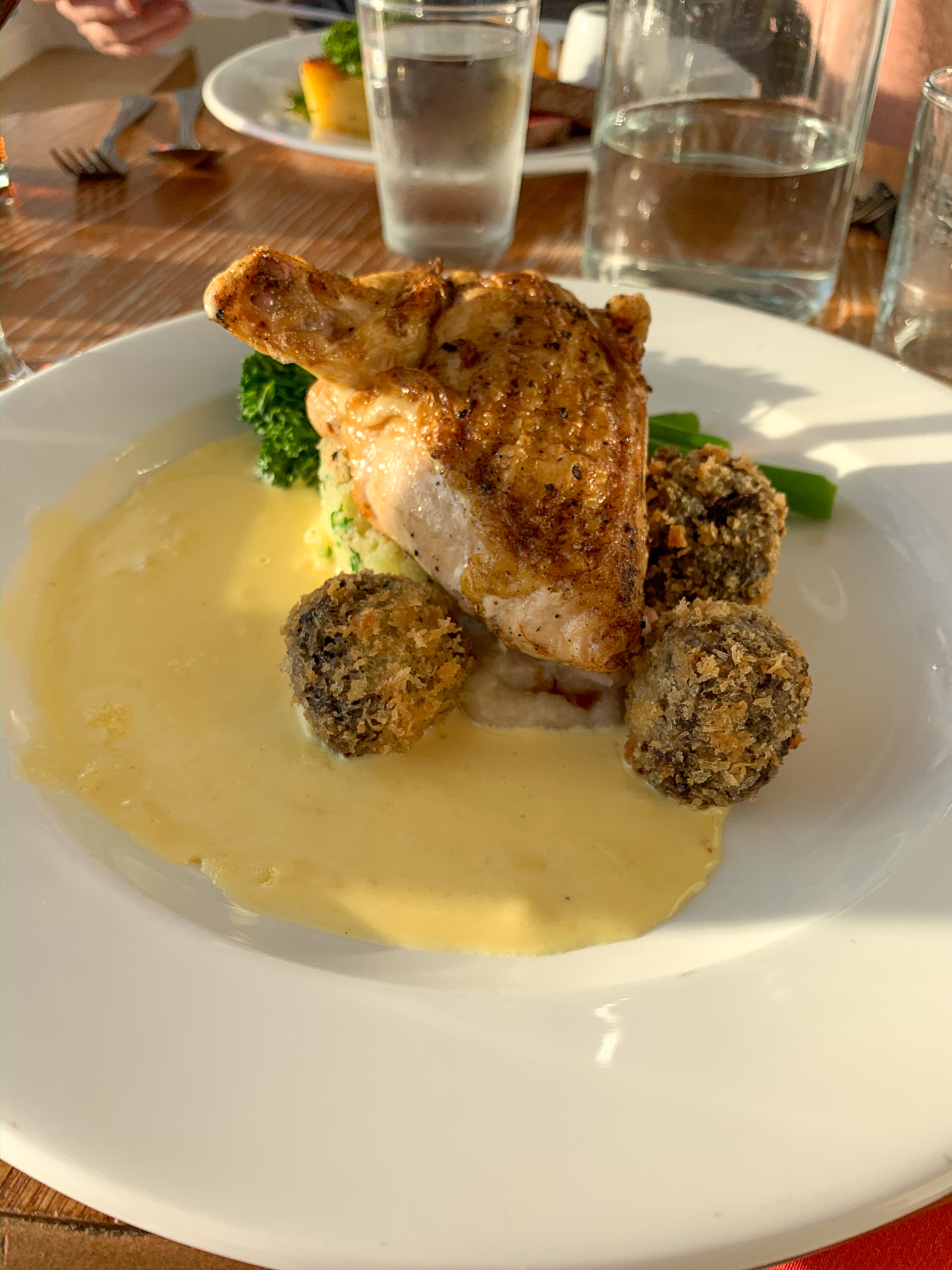 During our trip, we ended up having dinner in the Uig Hotel twice, and it was fantastic. All the food we ate on Skye was great! Since we were road tripping, and packing in as many places as we could each day, we ate out of our car for breakfast and lunch – fruit, peanut butter and jelly, and snacks. Honestly, this ended up working out well because Skye is so remote, and there aren’t many pubs or restaurants to begin with, and many were closed due to Covid. We booked in with our hotel for dinner. Most hotels in Scotland will filling their bookings with their hotel guests first, and then opening it up to others the day of. It made sense to eat near where we were staying/visiting, and we wouldn’t change a thing about it. The restaurant at the Uig Hotel was phenomenal! The first night, I had a chicken supreme that was amazing, and my husband had a deer dish with a berry jus. We don’t eat venison often, but this was outstanding. Much of the food on Skye is locally sourced as well. We ate well each night, and loved the local flavor and flair.