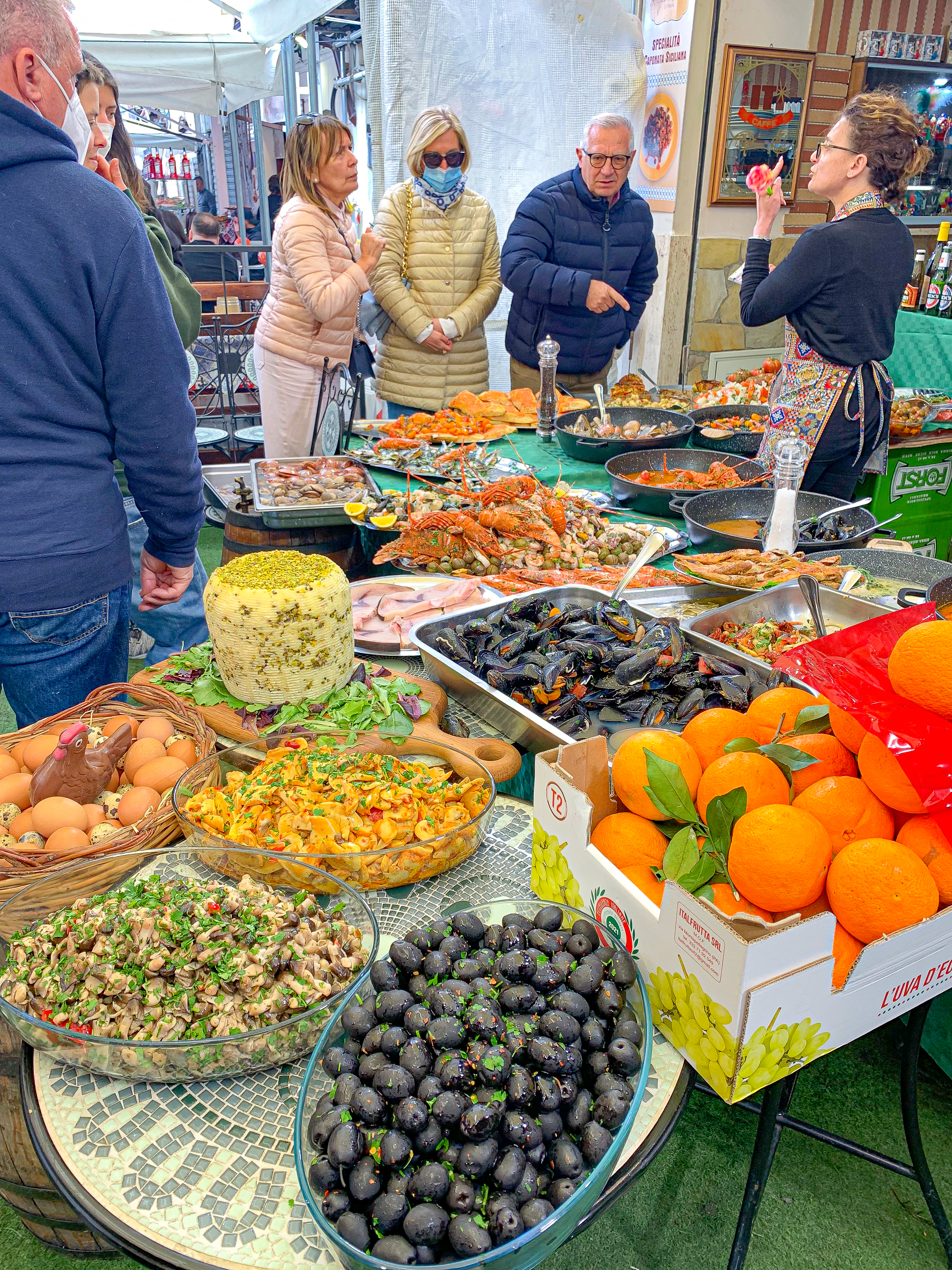 Hitting the local markets is one of my favorite things to do when we travel. It’s even better in Italy! There are a few bigger markets in Palermo. The one we loved the most was Ballaro Market. This market is primarily food, but there are other goods available as well. As you walk through the narrow market streets, you hear the vendors yelling in Italian, amidst a maze of fresh fruit, vegetables, fish, and street food. We sampled some amazing cannoli (they were making the ricotta fresh in front of us) and some fresh squeezed pomegranate juice. This is also a great place to buy souvenirs such as spices, pistachio crema, vacuum sealed pouches of olives, soaps, and other gifts. Believe me when I say, the market is an experience not to miss!
