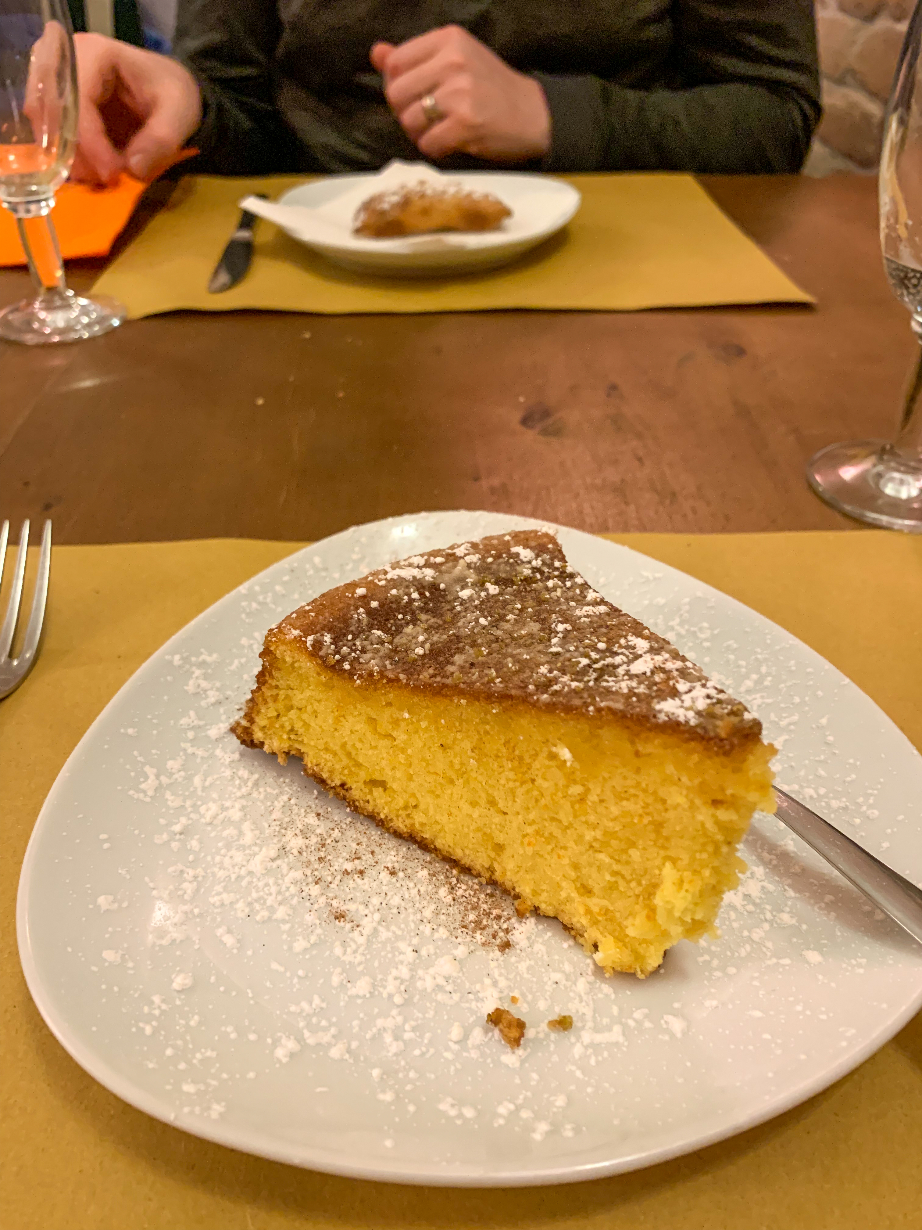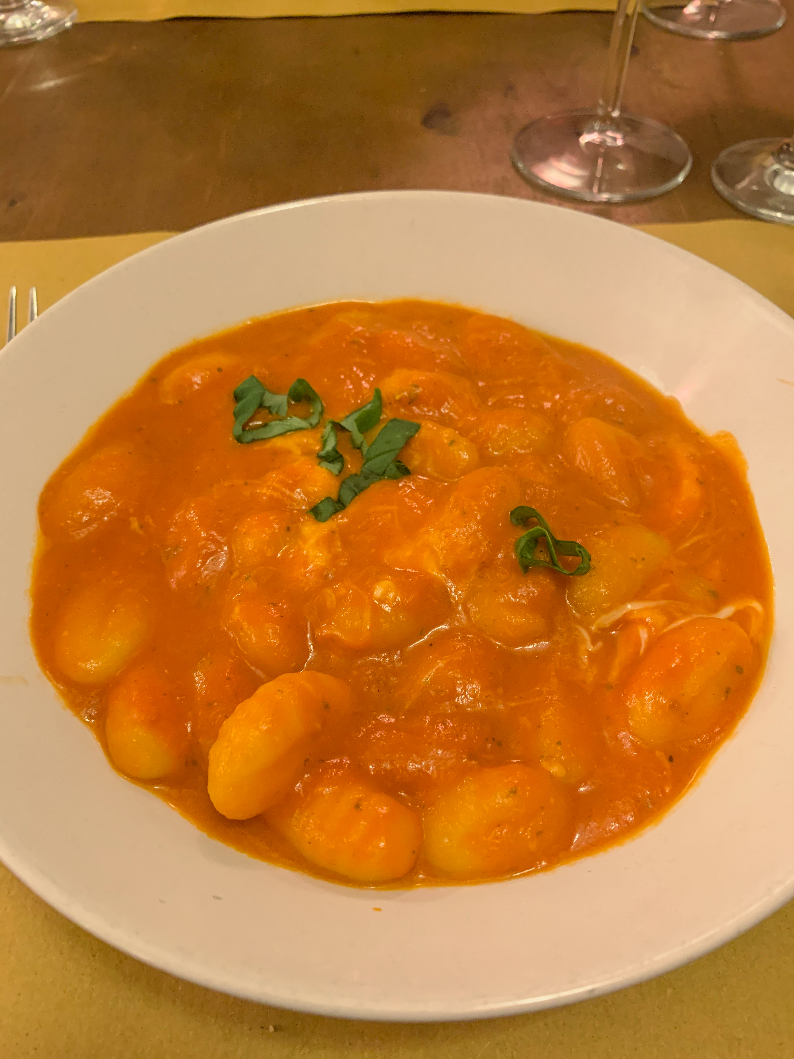 A slightly more upscale restaurant, this was a quick 5 minute walk from our hotel. The ambience was rustic and romantic, and they offer indoor and outdoor seating. The menu was more unique than your typical Italian dishes, and it was more expensive, but still a place I’d recommend. Perhaps my most interesting meal of the trip was there. I had a linguine with cod, chocolate, and candied oranges. It sounds crazy, but it was really good! This restaurant also gave us a small appetizer, truffles, and glass of champagne as part of the cover charge. (more on that later)