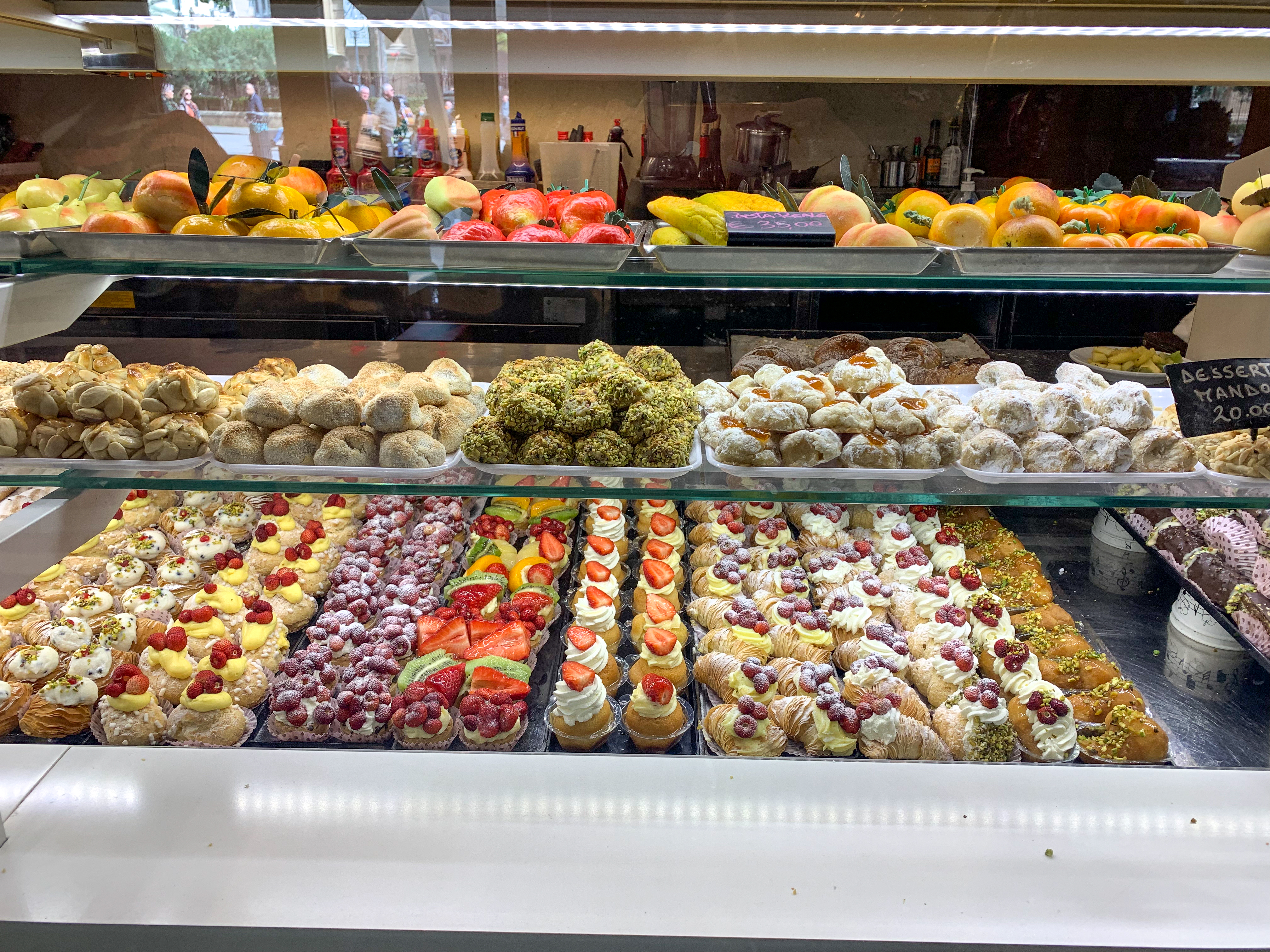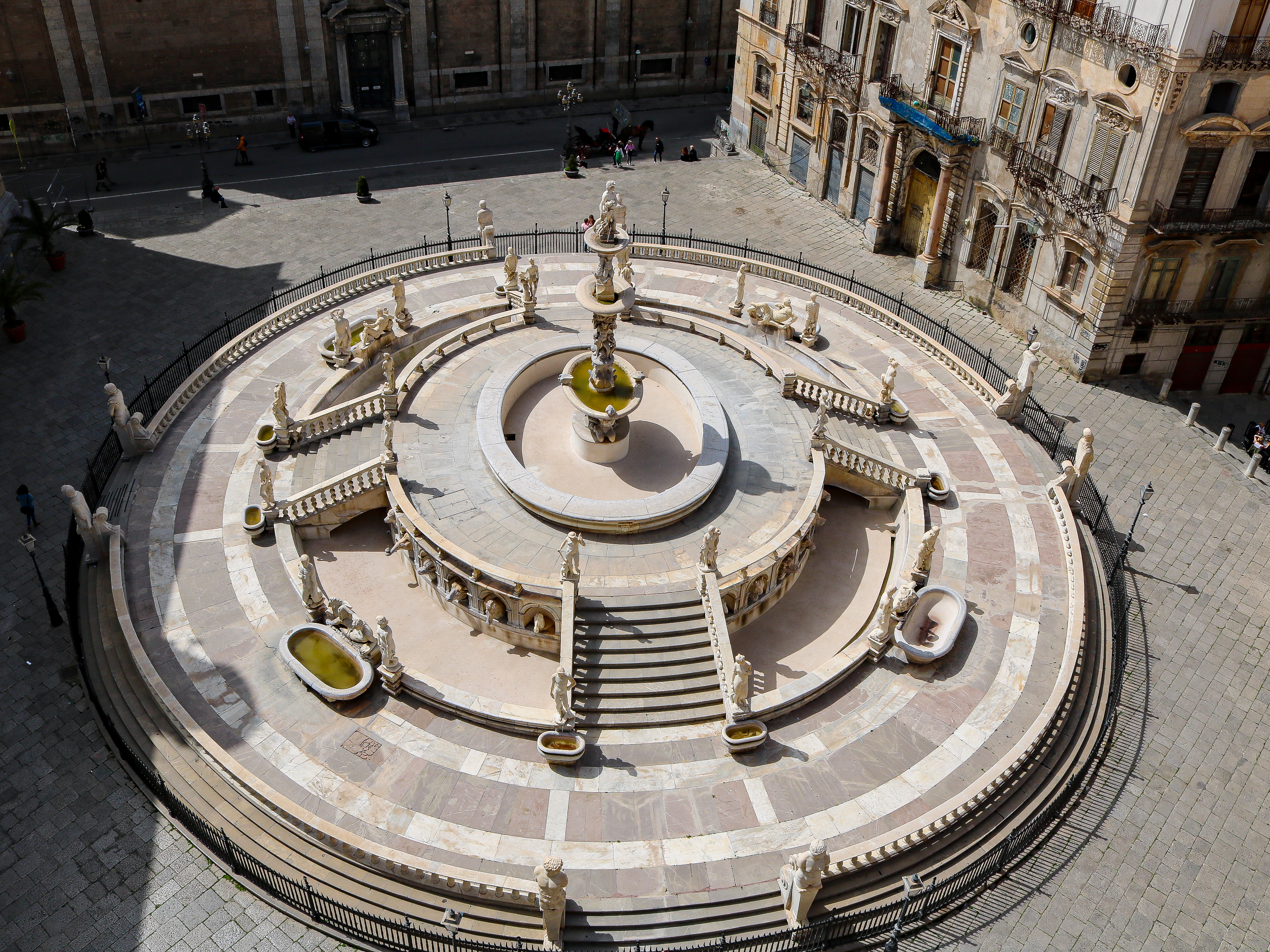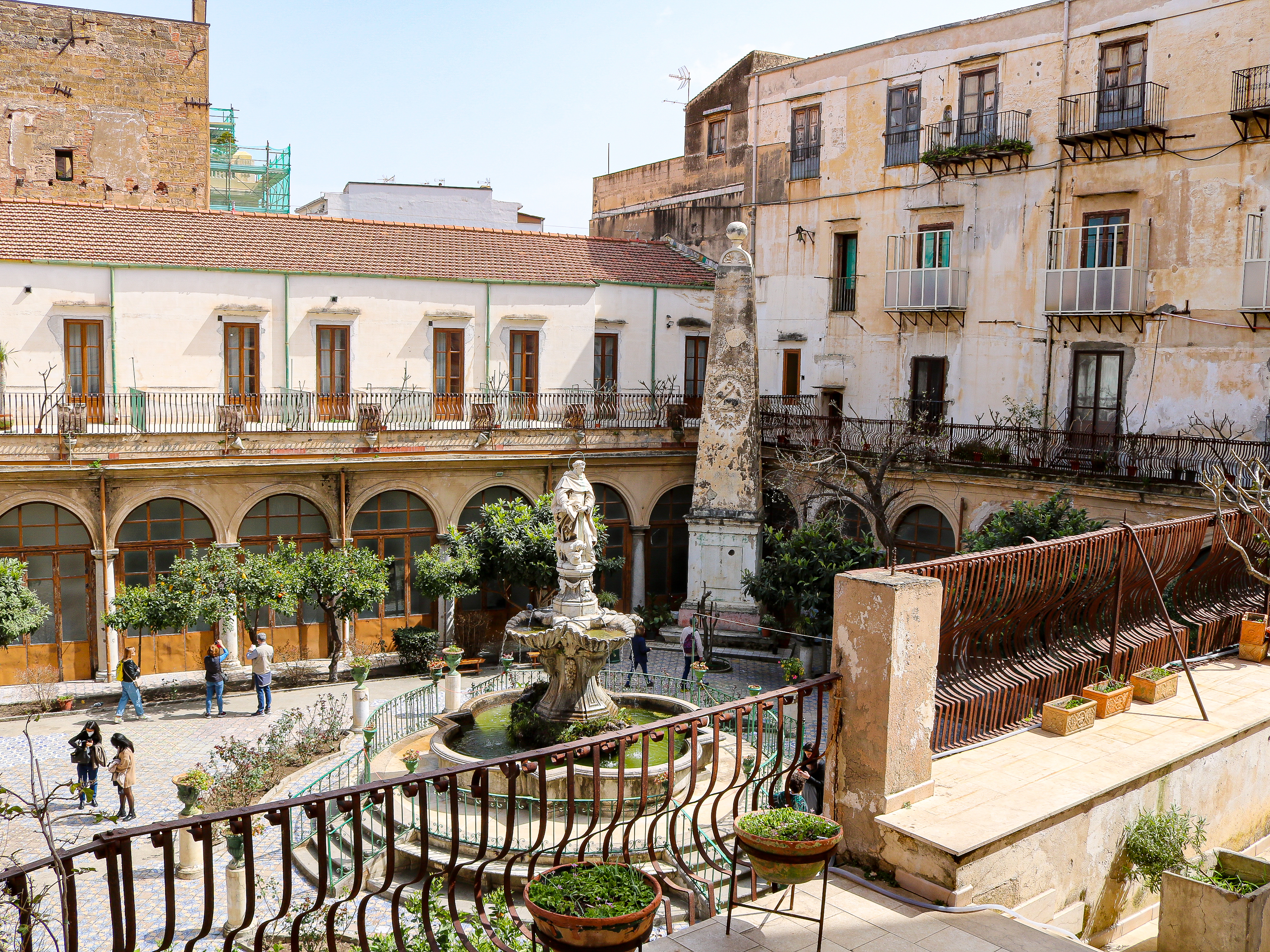 One of the best places to see the The Fountain of Shame is actually from the roof of a nearby church. Just around the corner, is the Church of Santa Caterina of Alexandra. For 7 euros, you can visit the church and climb to the top of the terrace and admire the view over Palermo. The climb is easy, and there are photo opportunities on top. On the second or third floor, there is also a bakery run by the monastery that is a must visit! (more on that below). Going to the bakery is a must do! They have so many delicious treats.