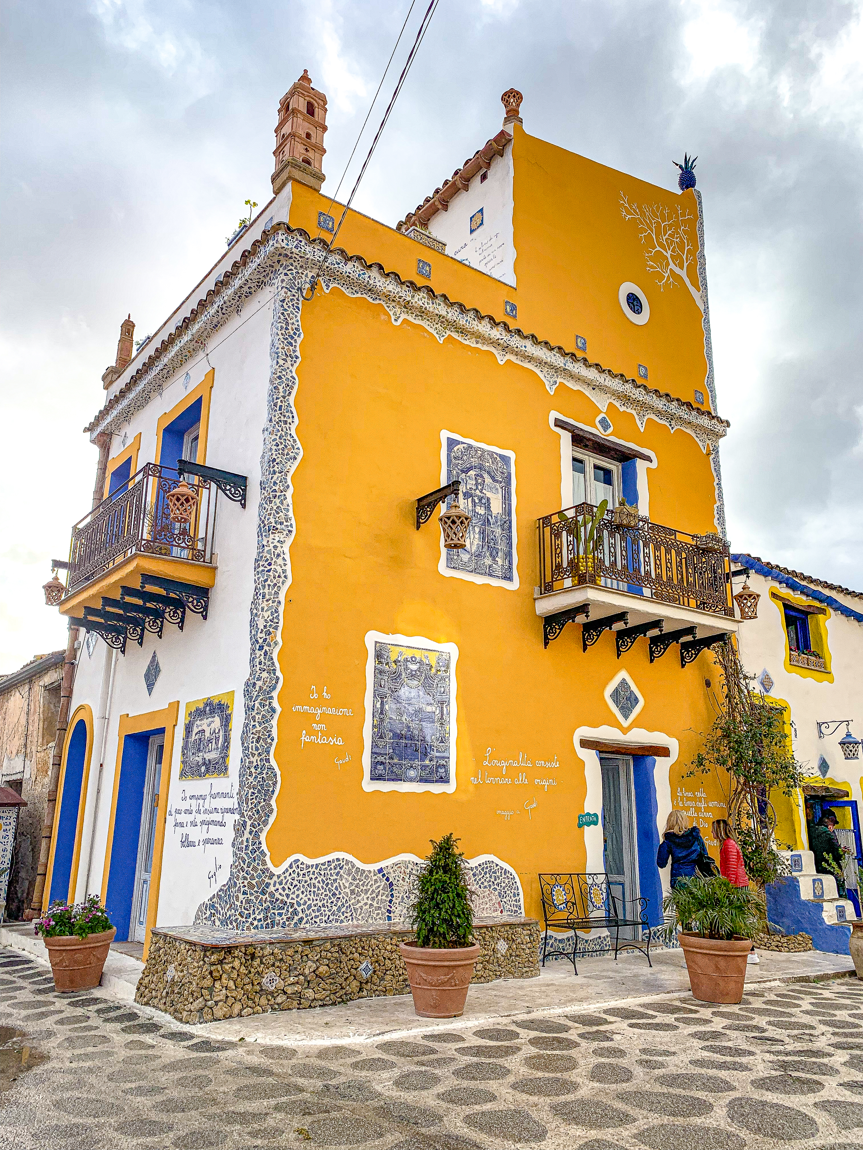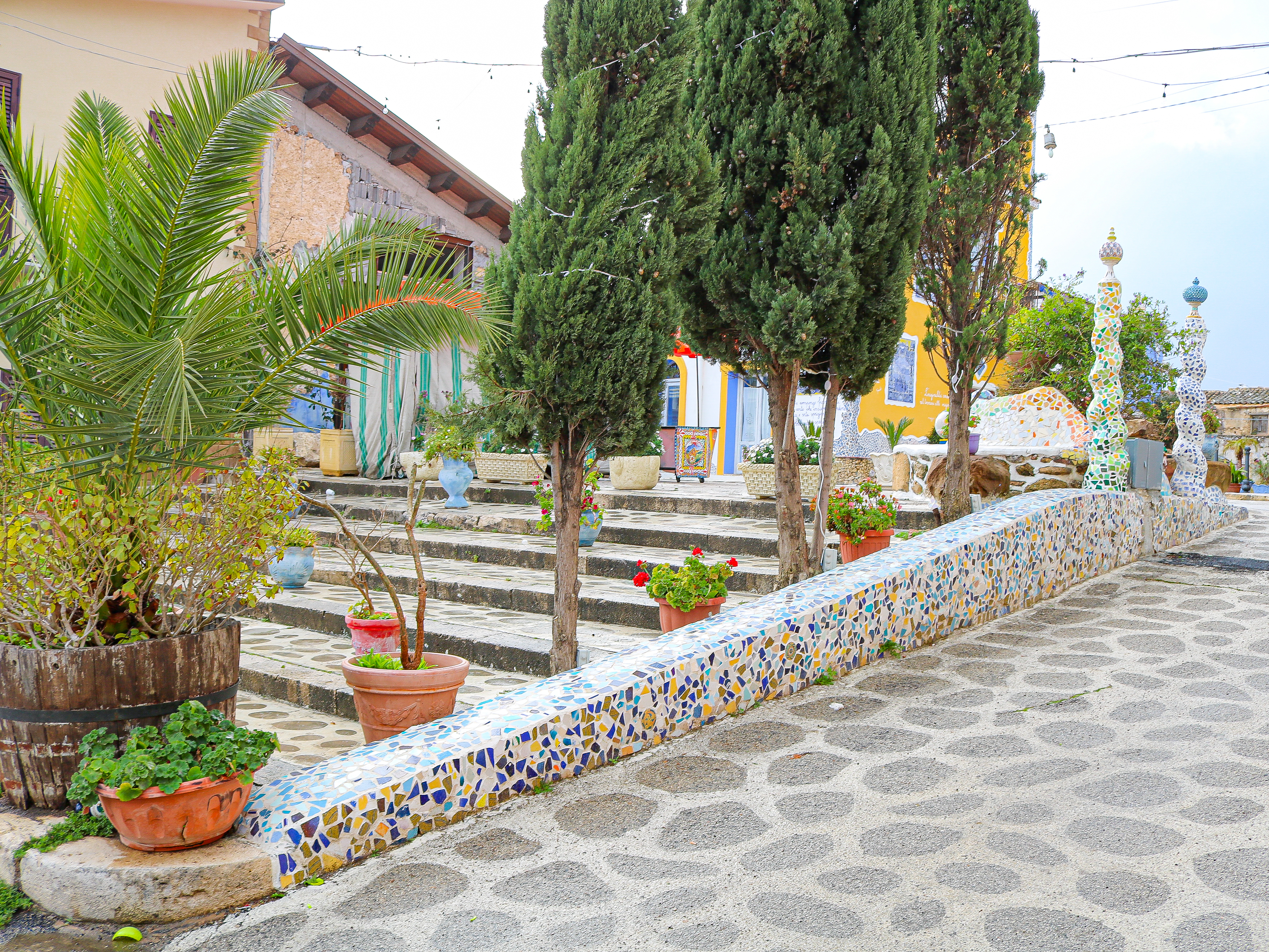 On our way to the airport, we drove to the nearby village of Borgo Parrini. Going here is only possible by car. I first saw this little village on instagram, and loved the beautiful homes. The word Parrini means “priests” and this tiny village was originally settled by the Jesuits in the 16th century. Recently the residents of this small town started renovating the buildings in a style similar to Gaudi, creating a tiny slice of Barcelona in Sicily. While the colorful homes are beautiful, there are only a handful of them. This town is MUCH smaller than I anticipated, but I was glad we made a quick stop. There is a parking lot in town, and we paid 2 euros to park. If you have a rental car, it is easy to stop in this town; you can honestly spend 30 minutes or less, and see everything. As cute as the buildings are, it was a bit of a let down. Some popular day trips from Palermo that we did not have time for, are Cefalu and Monreale. If we ever go back, I’d like to visit those places.