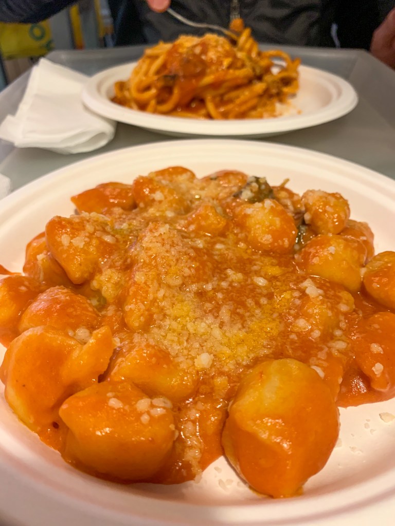 If you’re like many, eating is a top priority in Italy! Siracusa does not disappoint in this regard. There are many small shops and bakeries to try the best pastries, and of course the Sicilian street food – Arancino. The cone shaped fried ball of rice and meat, gets it shape from the nearby Mount Etna. These are a must try in Sicily! (If you’re in Palermo, they are called Arancina, and are round like an orange). No matter what they’re called, this street food is delicious. Other local foods include caponata (an eggplant and tomato dish) and pasta with sardines. Being an island, you’ll find a lot of seafood dishes in Sicilian restaurants. Of course, the specialty from nearby Catania is Pasta Alla Norman, which is a must try while visiting Sicily! I can never resist a plate of gnocchi, regardless of what part of Italy I’m in, and it hit the spot!