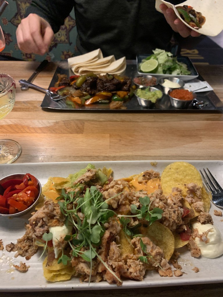 After our day trip, we set out to Rovaniemi city center to walk around and get dinner. There are a few cute shops, but otherwise there isn’t much to do in the city. One thing that we wish we had more of in the UK is good Mexican food, so we opted to go to Amarillo, a Tex Mex restaurant. The food was good, the margaritas were better, and it hit the spot after being outside in the cold. But… it’s just so hard to find the same kind of Tex-Mex or Mexican food that you get in the states. We headed back to our aurora cabin, hoping for another glimpse of the lights, but sadly it was cloudy. We still enjoyed a local Finnish brew in our cabin. (Another perk of getting the rental car was being able to stop at the supermarket and stock our mini-fridge with snacks and drinks). Sadly, we weren’t able to see the Northern Lights this night, though we did stay up and try.