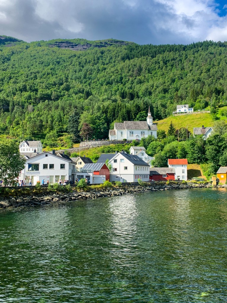 Hellesylt is a charming Norwegian village at the end of Sunnylvsfjorden, boasting an impressive waterfall and stunning views all around. The village also sits on a branch of Storfjorden, which connects with the famous Geirangerfjord, which is UNESCO protected. We visited Hellsylt on P&O’s Iona, making it a simple way to explore this gorgeous area. Logistically, it is much easier to arrive at Hellesylt via cruise ship than it is by car! The village is small, with around 300 residents, making it a perfect way to spend a day off a cruise ship. The ship docks right at the village, and you walk right into town! There’s something so magical about visiting these quaint villages deep in the fjords.
